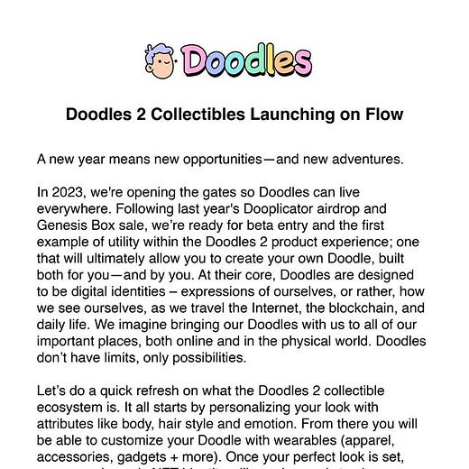 We’ve known that Doodles 2 — the massively enlarged and customizable follow-up to Doodles — is incoming for some time now, and we knew it wasn’t going to use Ethereum because of the costs involved, but we didn’t know which chain Doodles was going to choose. Now we do, and the answer is Dapper Labs’ Flow, the blockchain best known for NBA Topshot.