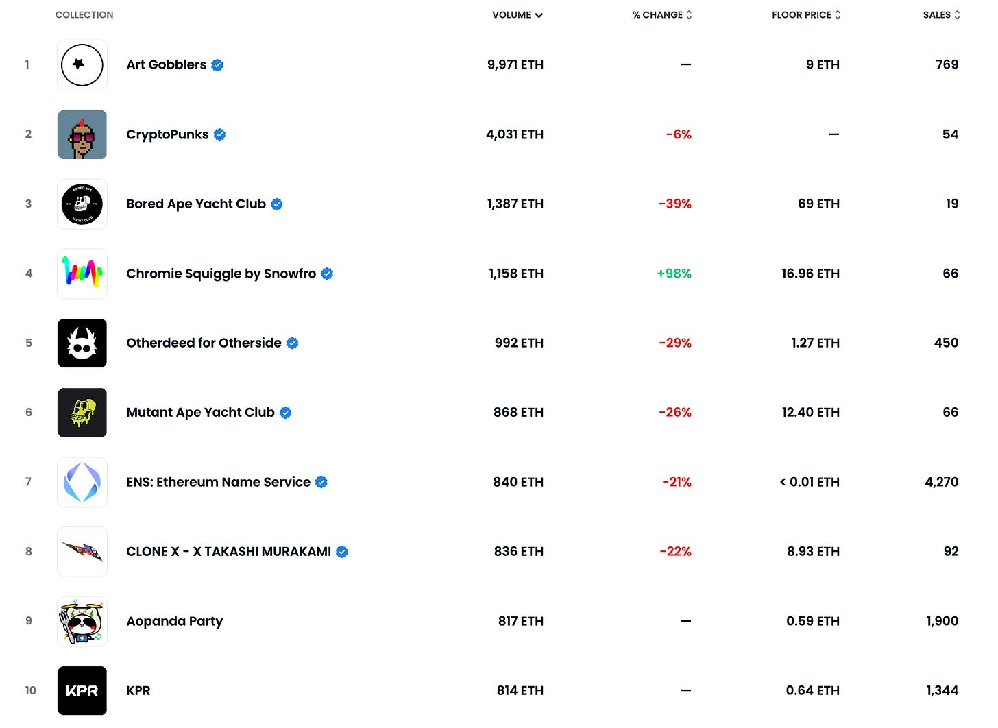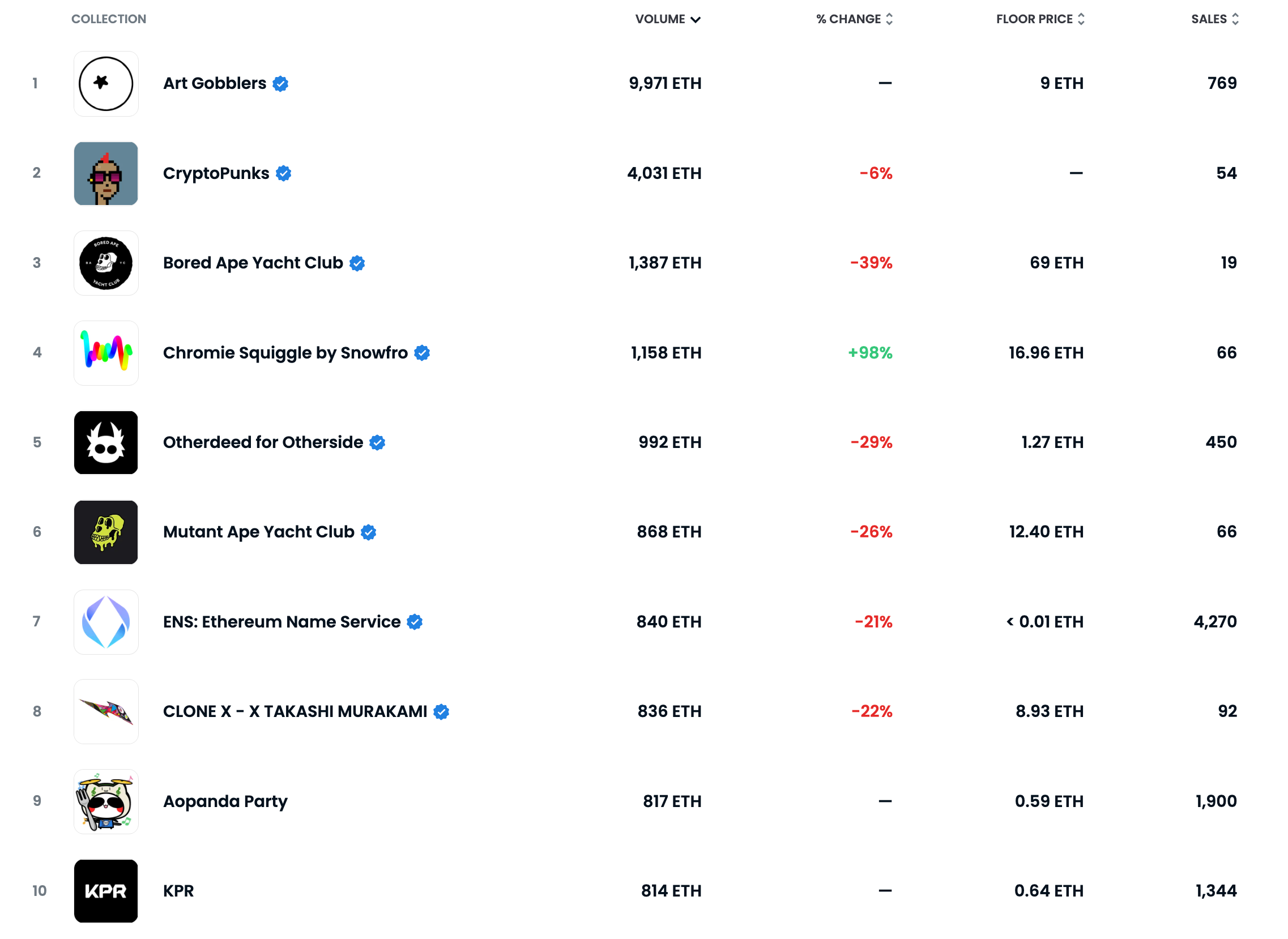 You get zero points for guessing which project gobbled its way to the top of this week’s chart. Beyond that shakeup, it’s business as usual all the way down to the last two slots in the top 10, which are filled by newcomers Aopanda Party and KPR in places 9 and 10, respectively.