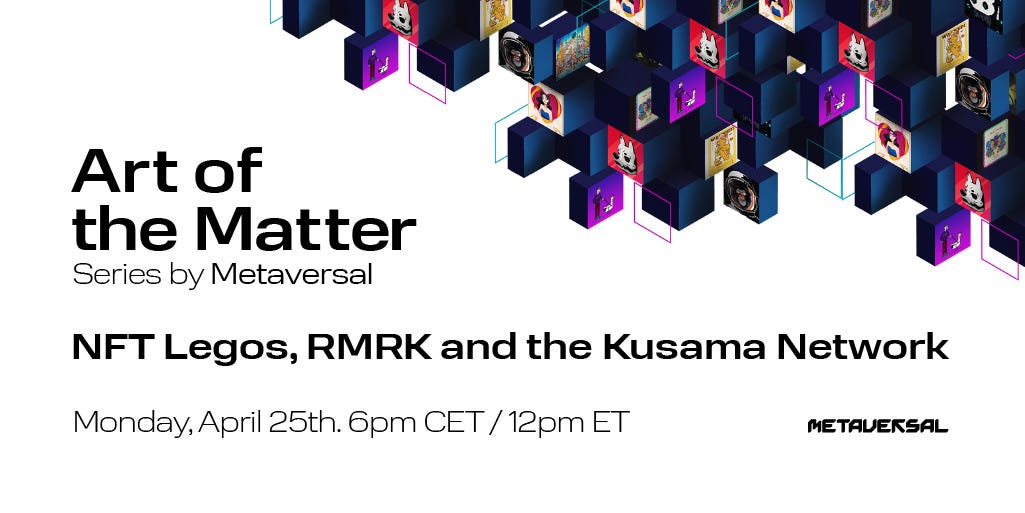 On Monday, our weekly Twitter Spaces series will be looking at the ingenious world of “NFT Legos.” Bruno Skvorc will be joining hosts Jessica Angel and Craig Wilson to talk about this, and related topics, like “nested and multi-resource NFTs.”